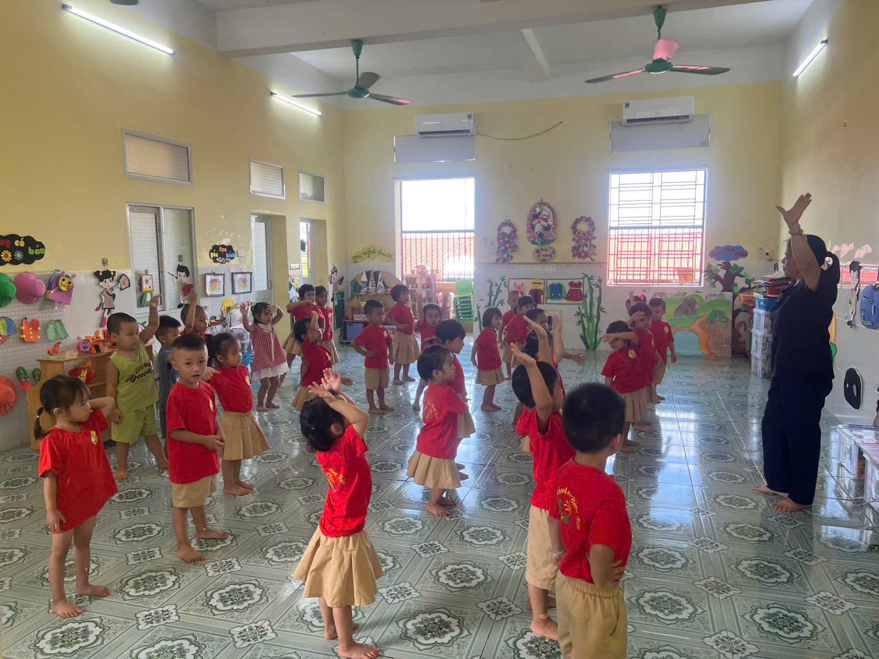 Dưới sự hướng dẫn tận tình và sáng tạo của các cô giáo, những đôi chân nhỏ xíu, những cánh tay mềm mại của các bé đang dần làm quen với từng nhịp nhạc, từng động tác múa mềm mại, uyển chuyển. Dù còn nhỏ tuổi, nhưng các bé luôn thể hiện tinh thần hăng say, nghiêm túc và đầy hứng khởi trong mỗi buổi tập.