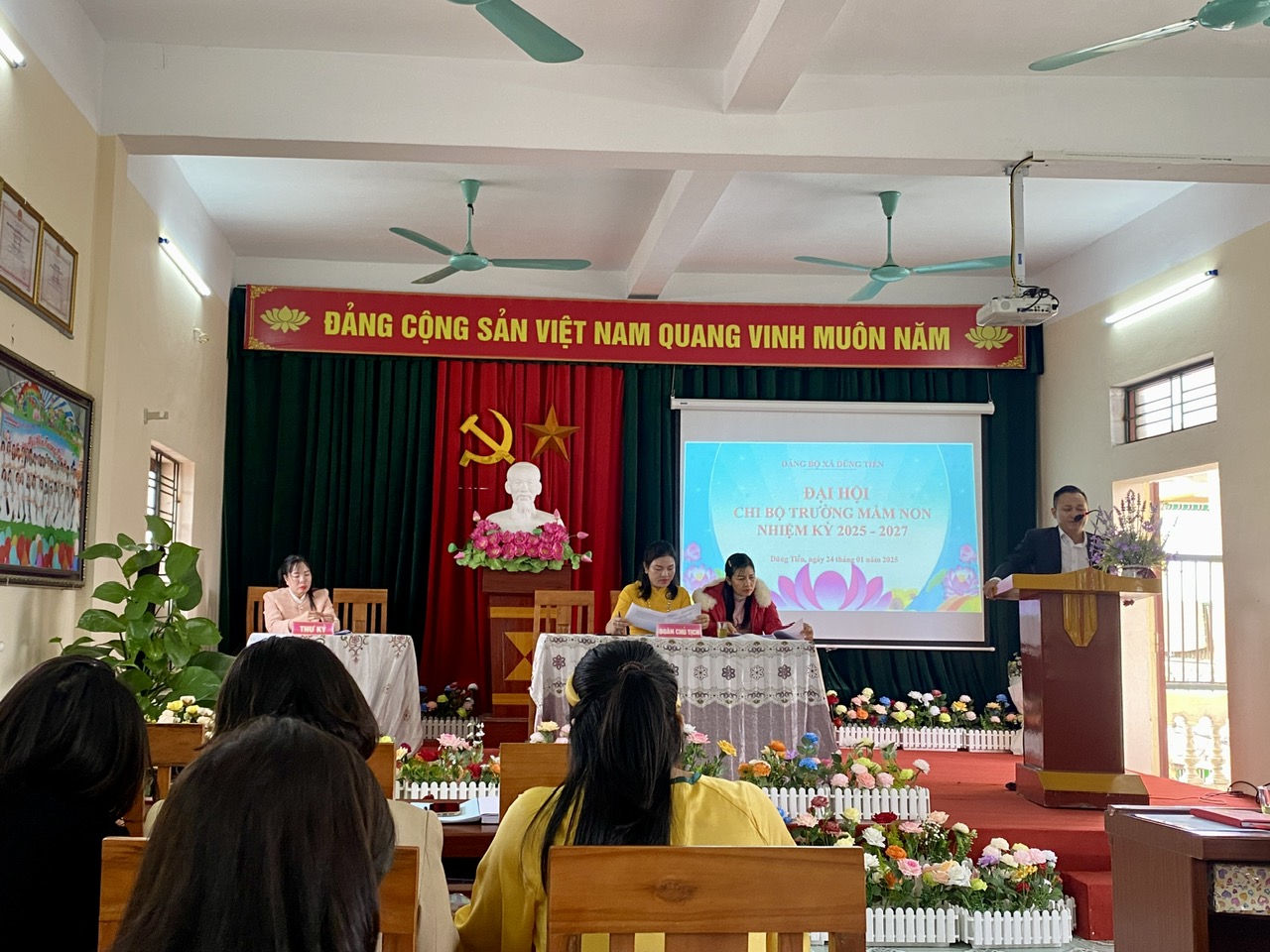 * Kết quả: Với tinh thần dân chủ- trách nhiệm- đoàn kết, Đại hội đã diễn ra thành công tốt đẹp. Đây là dấu môc quan trọng, mở ra một giai đonaj phát triển mới, góp phần nâng cao chất lượng giáo dục và công tác Đảng trong nhà trường.