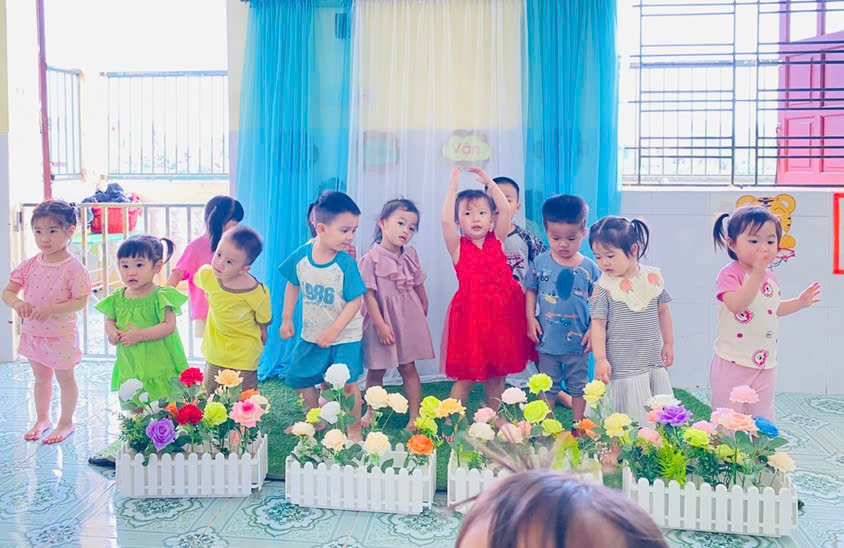Ví dụ trong giờ đón trả trẻ tôi có thể cho trẻ nghe nhạc, nghe hát hay làm quen với những bài hát trong chủ đề, ở hoạt động thể dục sáng tôi cho trẻ tập các động tác theo các bài nhạc, hay khi chơi hoạt động góc trẻ được hoà mình vào âm nhạc và thể hiện những bài hát mà trẻ yêu thích.