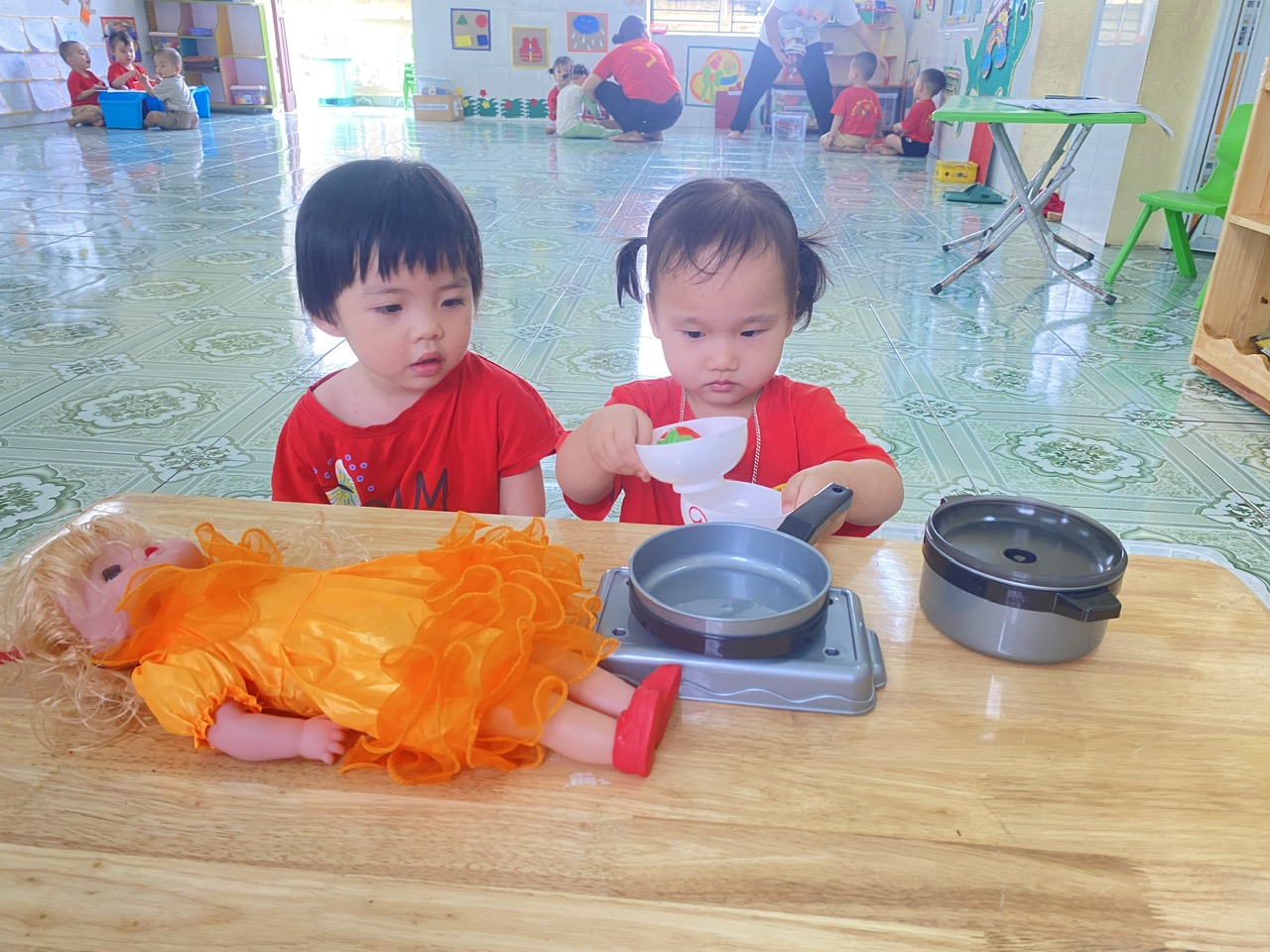 Một số hình ảnh về hoạt động chơi tập trong các góc của các bé lớp Nhà trẻ 2
