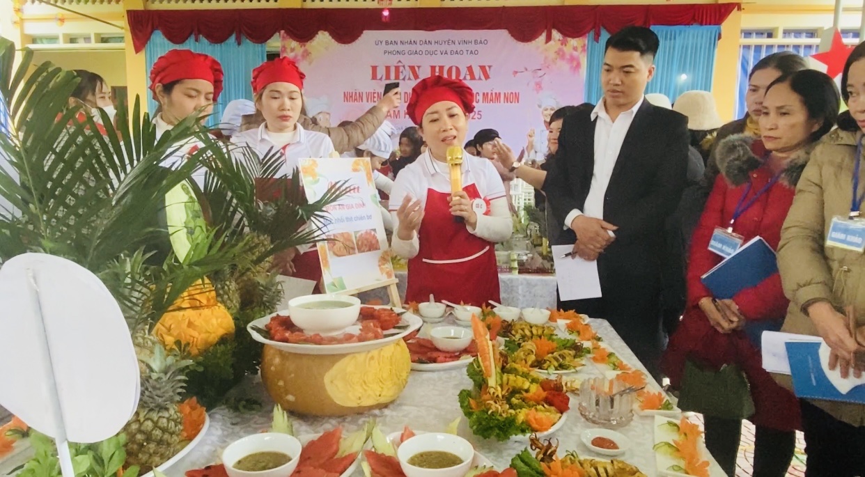 Trường Mầm non Dũng Tiến có 1 đồng chí nhân viên nuôi dưỡng tham gia dự thi tạo buổi liên hoan.Các đ/c nhân viên đã tìm tòi, sáng tạo, đưa ra các ý tưởng và chế biến được nhiều món ăn dinh dưỡng hàng ngày cho trẻ. Không những nấu ăn ăn, các cô còn khéo léo trong việc trang trí sao cho đẹp mắt, hấp dẫn tạo cho trẻ sự hứng thú.