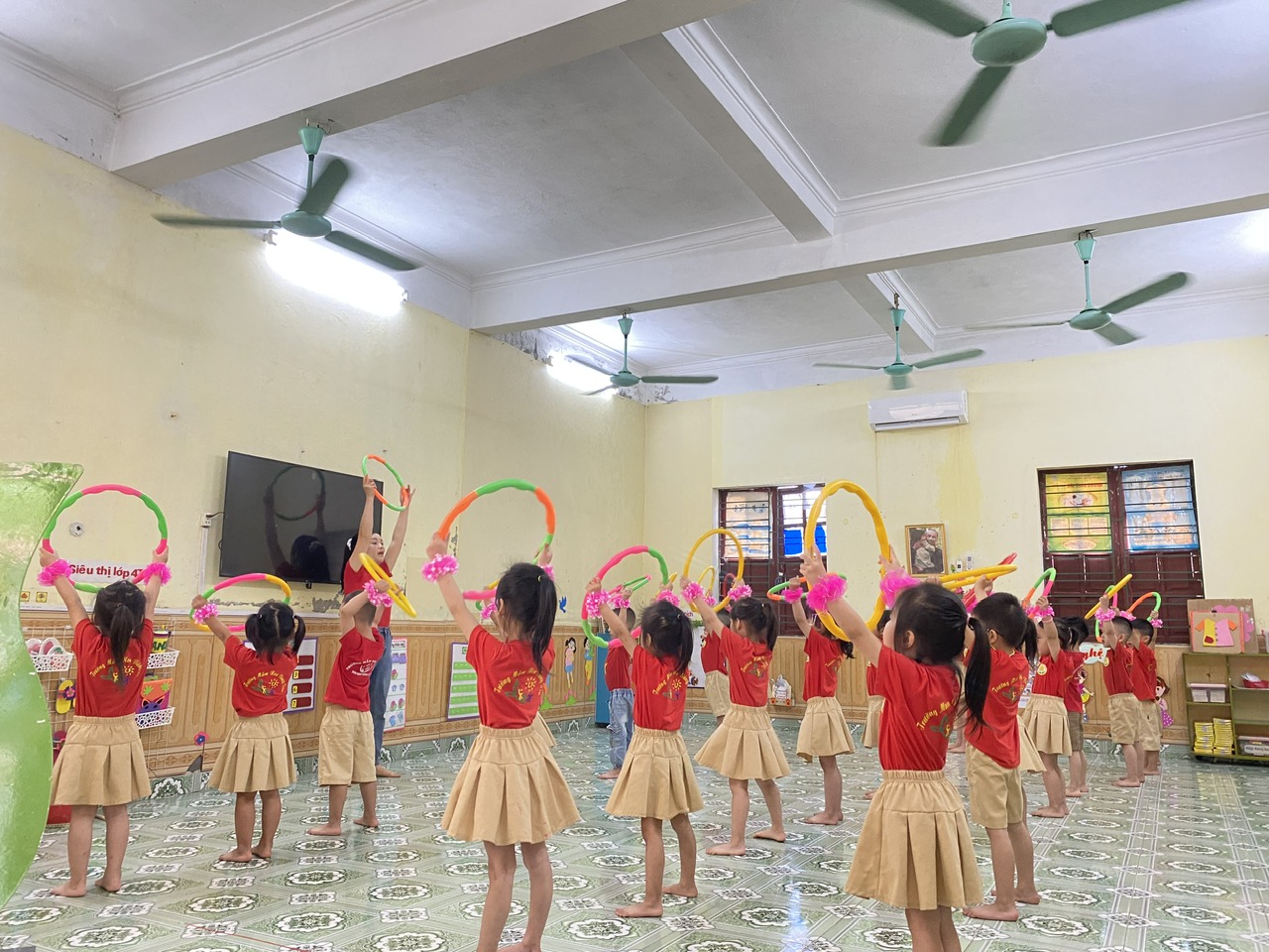 Dưới dây là một số hình ảnh trẻ tham gia hoạt động phát triển thể chất của lớp 4 tuổi 4:
