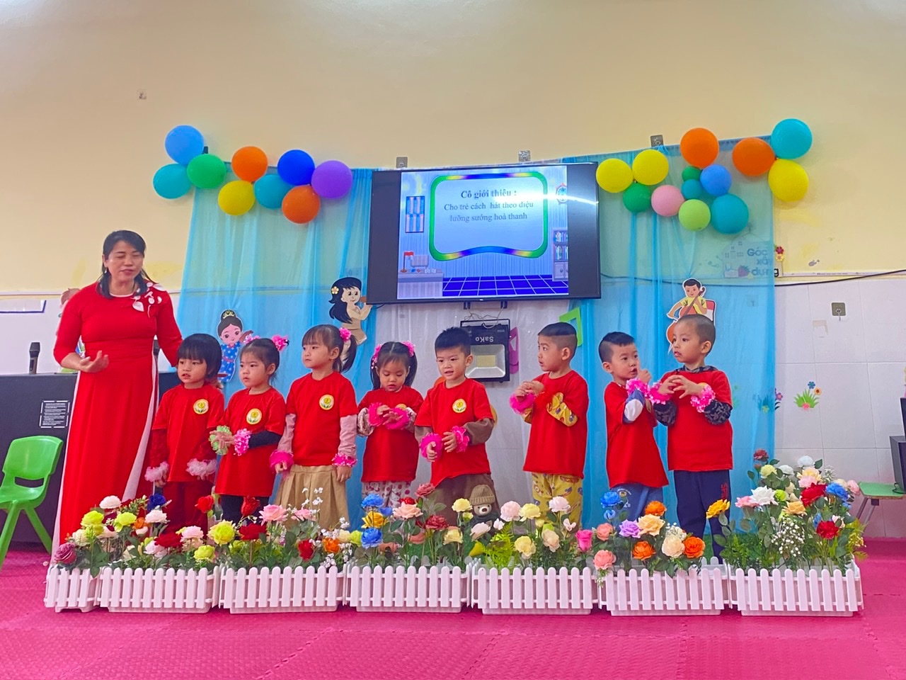 Điều đặc biệt trong các hoạt động âm nhạc tại trường mầm non là sự kết hợp giữa âm nhạc và vận động. Trẻ em ở độ tuổi này rất thích được nhảy múa, vỗ tay, thể hiện điệu bộ theo nhạc, giúp trẻ linh hoạt hơn, đồng thời rèn luyện khả năng phối hợp tay chân, nâng cao kỹ năng vận động. Những trò chơi âm nhạc như "Lắng nghe âm thanh" hay "Ai nhanh nhất?" không chỉ mang lại niềm vui mà còn giúp trẻ rèn luyện khả năng tập trung và sự kiên nhẫn.
