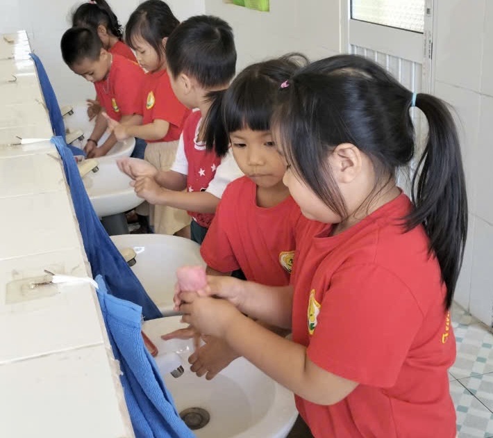 Ở trường các con được rèn luyện giữ gìn vệ sinh cá nhân như một thói quen biết tự rửa tay trước và sau khi ăn cơm.