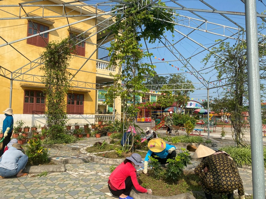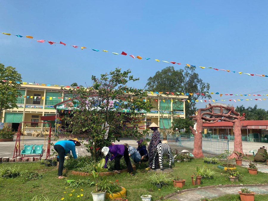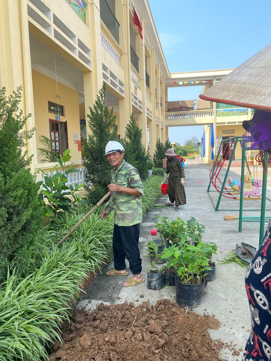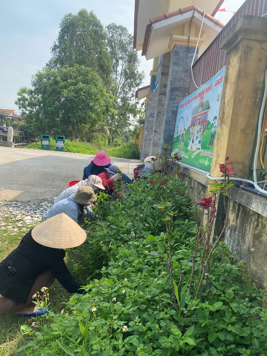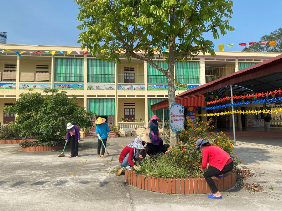 Những ngày cuối tháng 04 nhà trường đã huy động cán bộ, giáo viên, nhân viên trong nhà trường đã chung tay làm công tác vệ sinh quét dọn vệ sinh môi trường trong và ngoài lớp học, các khu vui chơi, vệ sinh cắt tỉa cây cảnh trong khuôn viên trường, dọn dẹp vệ sinh sân trường.