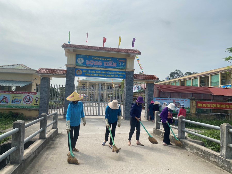 Sau đây là một số hình ảnh của CBGVNV trường Mầm Non Dũng Tiến với công tác vệ sinh môi trường.