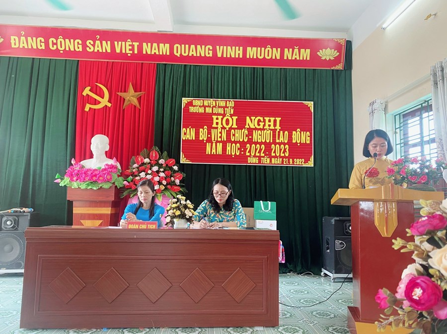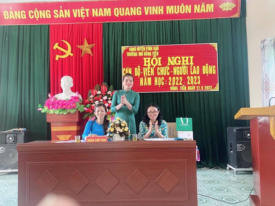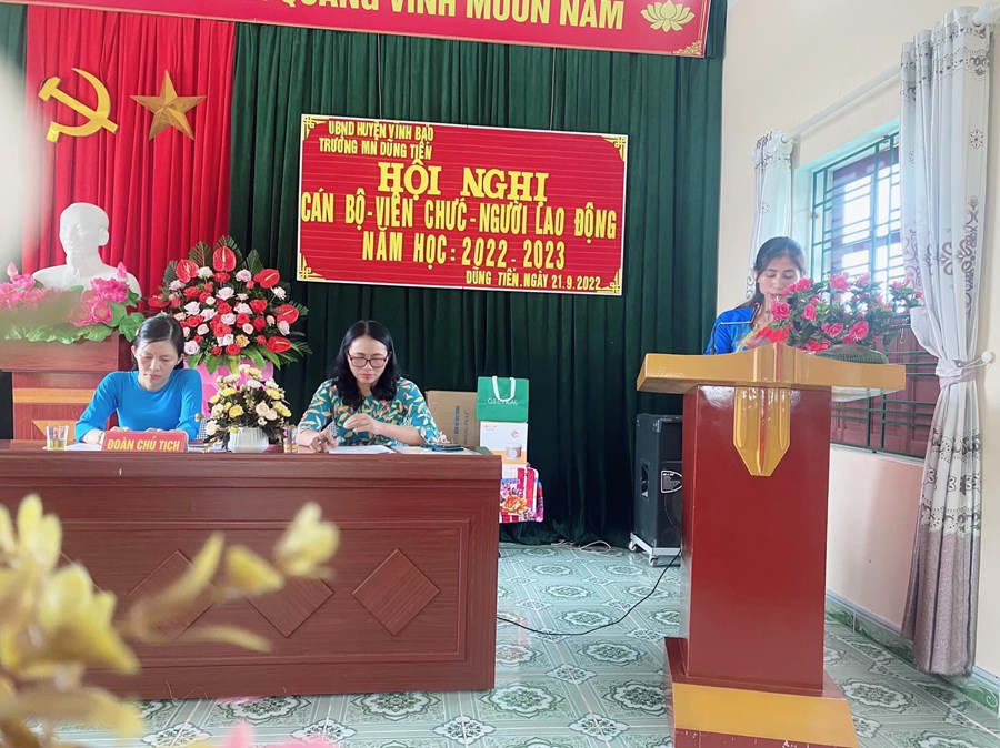 Hội nghị diễn ra trong bầu không khí vui tươi, dân chủ và đầy trách nhiệm, được lắng nghe ý kiến phát biểu chỉ đạo của Đ/c Vũ Viết Hải-PCT ủy ban xã Dũng Tiến. Các đại biểu ghi nhận những thành tích, sự nổ lực phấn đấu của tập thể CBGV đạt được trong những năm qua, chia sẽ những vất vả với giáo viên mầm non và những định hướng trong việc thực hiện nhiệm vụ năm học 2022-2023.