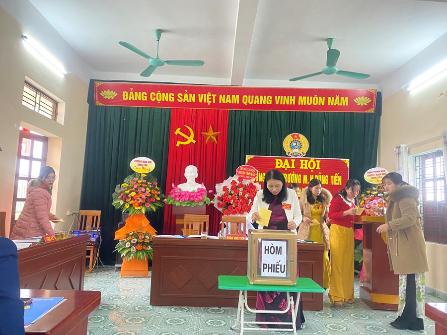 Đại hội đã bầu 03 đoàn viên vào Ban Chấp hành Công đoàn nhiệm kỳ 2023-2028. Đại hội cũng đã tiến hành bỏ phiếu, bầu đại biểu đi dự Đại hội LĐLĐ huyện Vĩnh Bảo lần thứ XI, nhiệm kỳ nhiệm kỳ 2023-2028. Ban chấp hành công đoàn khóa mới có đủ phẩm chất năng lực để lãnh đạo công đoàn nhà trường đoàn kết thực hiện tốt nhiệm vụ mà Đại hội đặt ra.